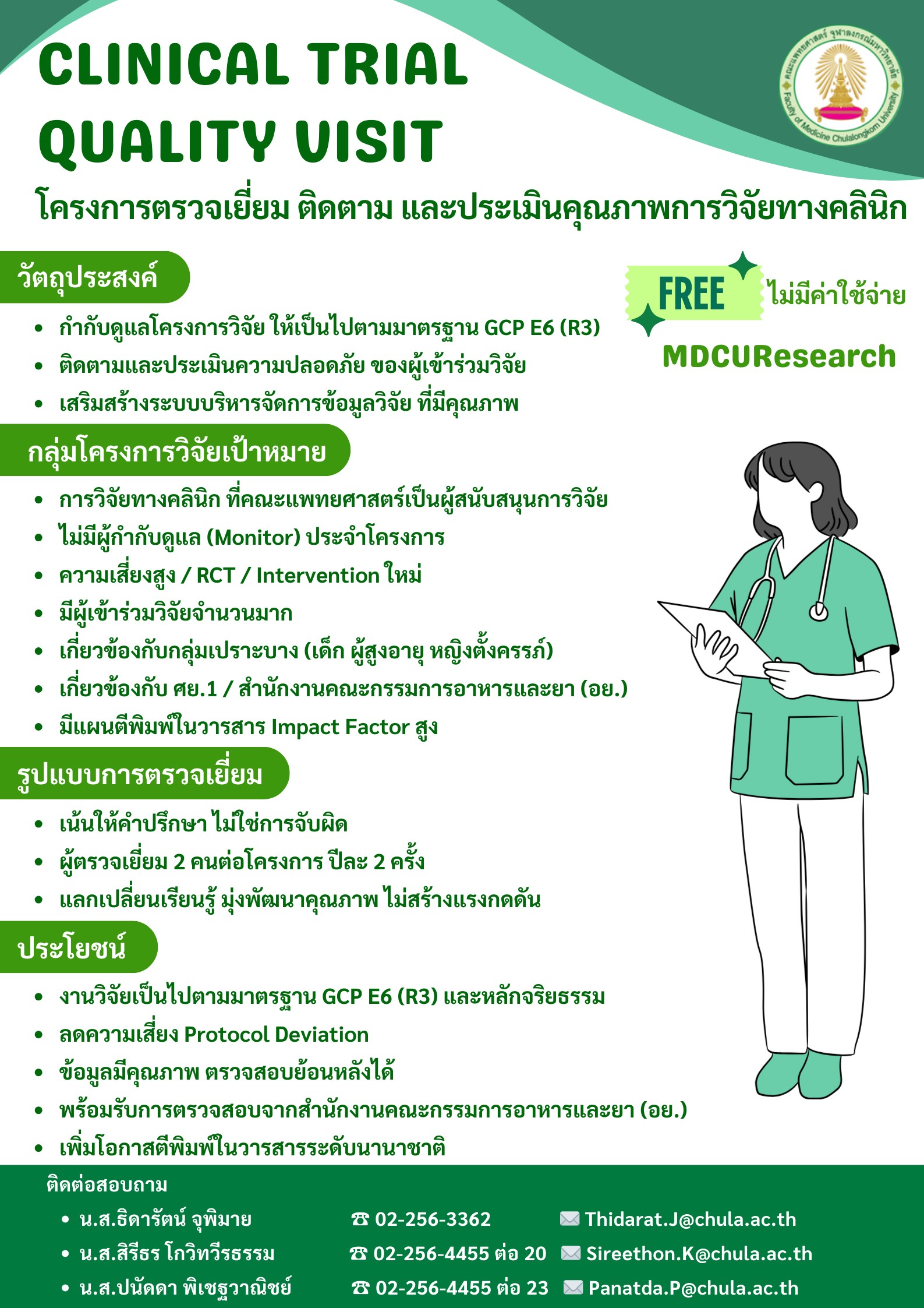 ประชาสัมพันธ์ โครงการตรวจเยี่ยม ติดตาม และประเมินคุณภาพการวิจัยทางคลินิก (Clinical Trial Quality Visit)