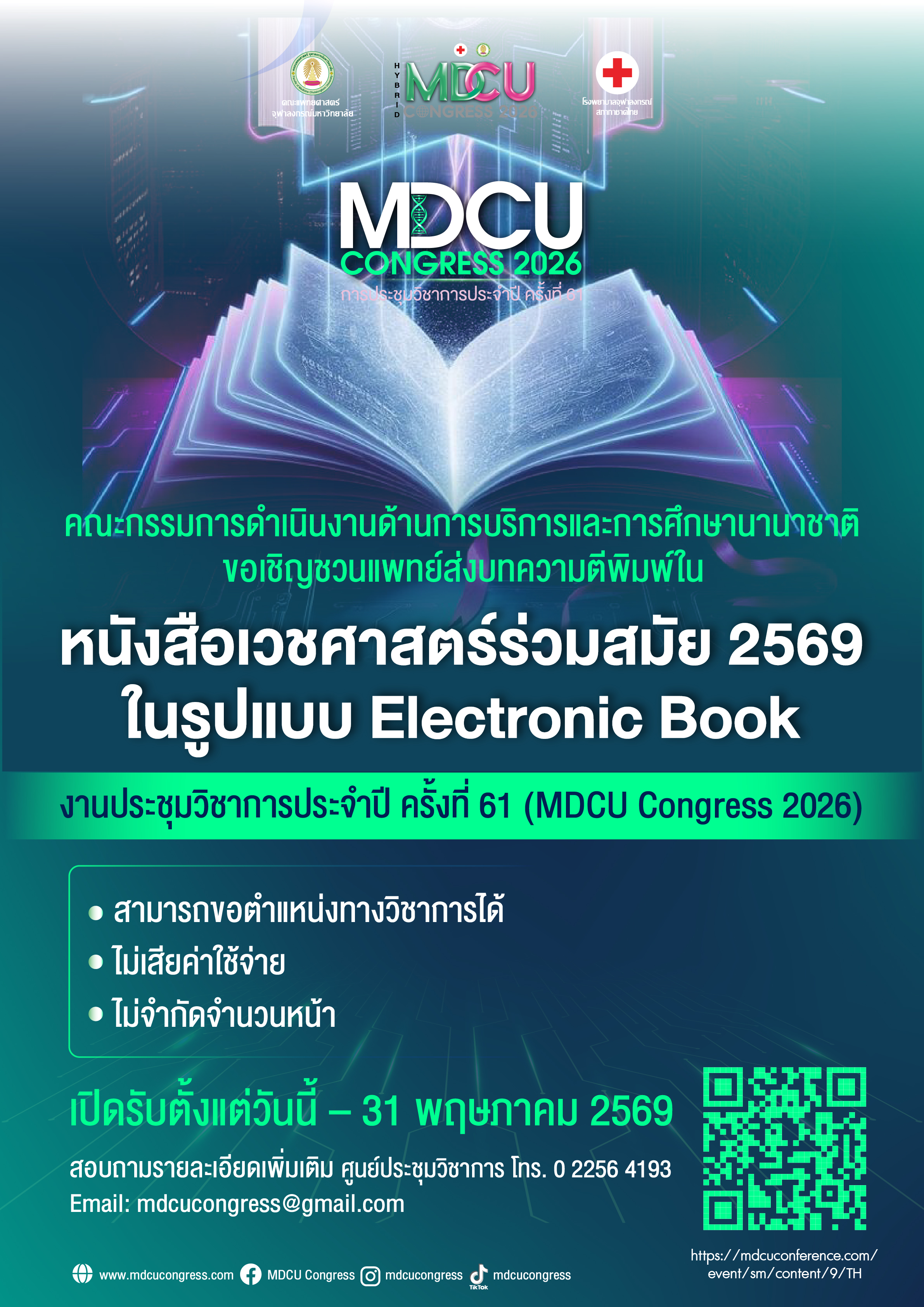 ขอเชิญชวนส่งบทความ "ตีพมพ์" ในหนังสือประกอบการประชุมวิชาการประจำปี ครั้งที่ 61 (MDCU Congress 2026)