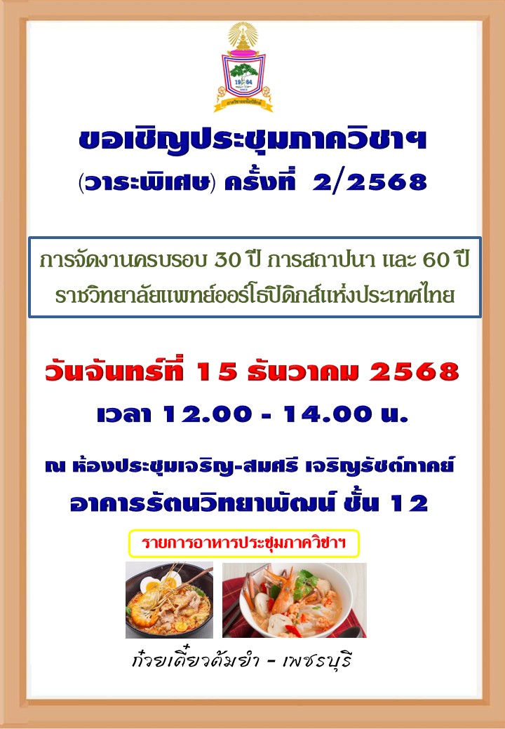 ขอเชิญประชุมภาควิชาฯ (วาระพิเศษ) ครั้งที่ 2/2568