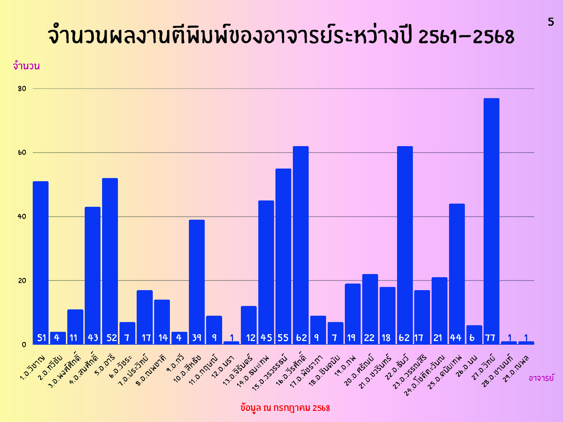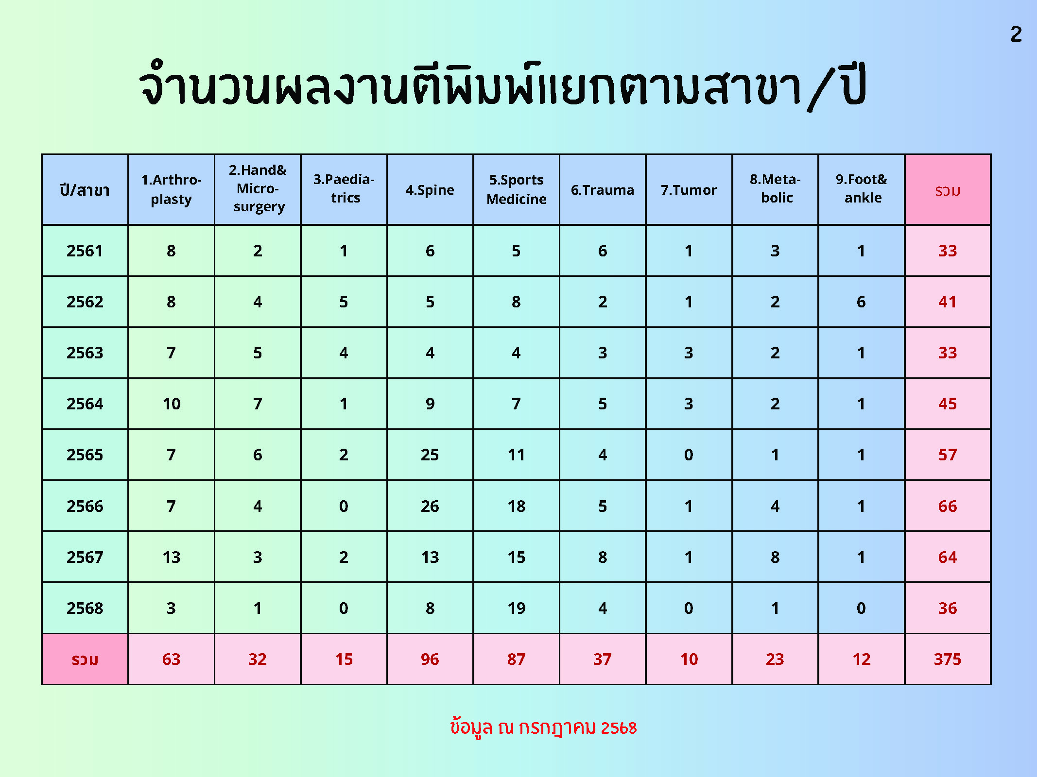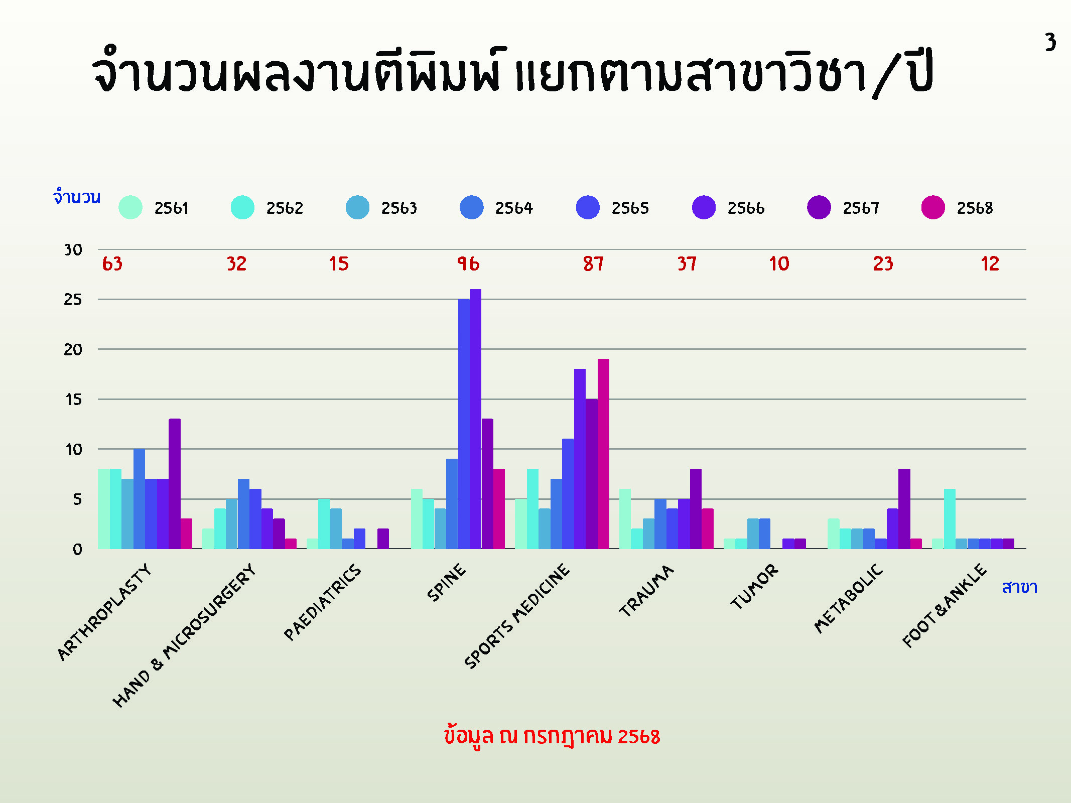 สถิติข้อมูลผลงานตีพิมพ์ของคณาจารย์ภาควิชา ระหว่างปี พ.ศ.2561-2568